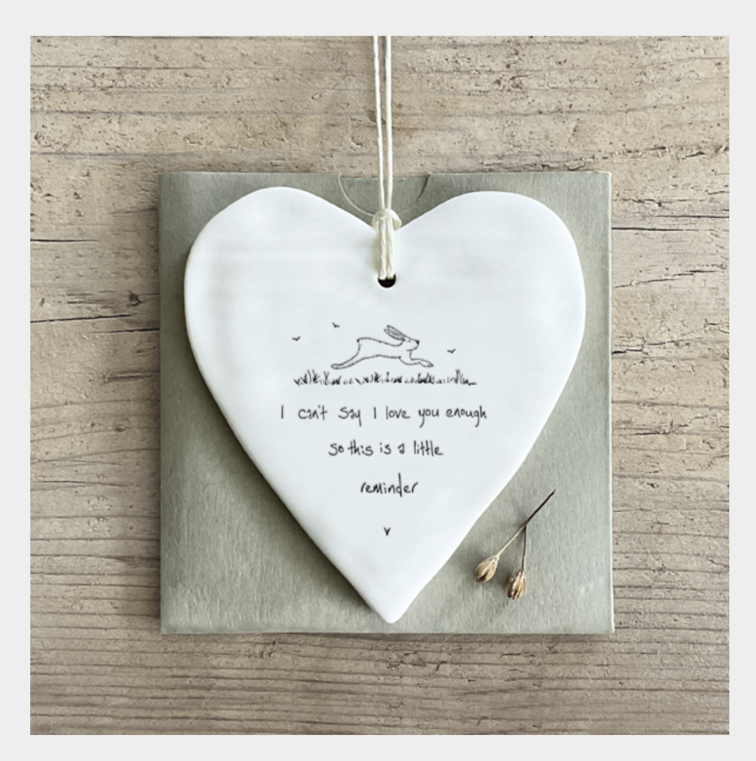 From East of India is this wobbly porcelain, hanging heart with a leaping hare.