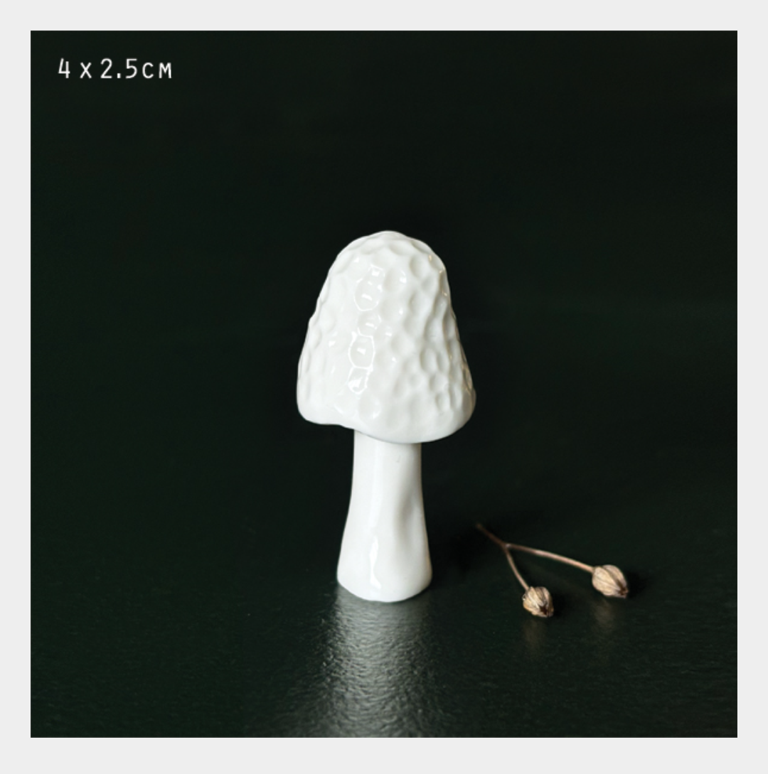 This listing is for one porcelain morel mushroom. Images are for illustration of the range.