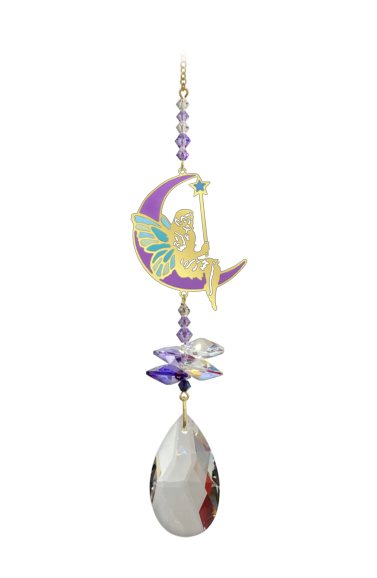 This delightful Fairy with Wand is part of the colourful Window Jewels™ range, letting dreams and rainbows shine into any room. The mirror-gold motif is set between a matching bead run and a crystal cascade in the aurora colourway, and captures sunlight to create colourful projections onto walls and surfaces. Completed with a brilliant clear crystal pendant for maximum rainbow-making effects.