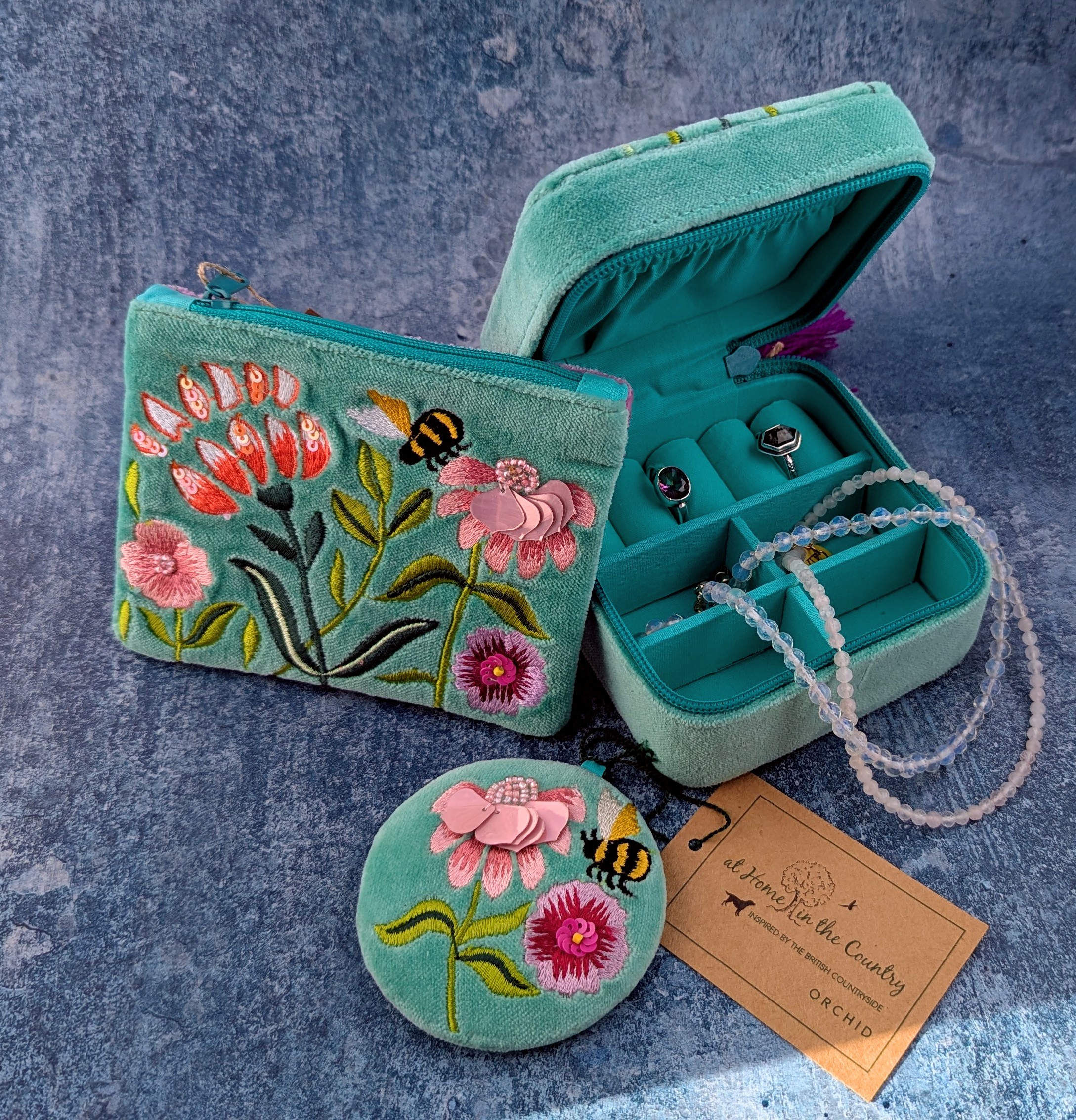 Spring Meadow Velvet Jewellery Box - Mint