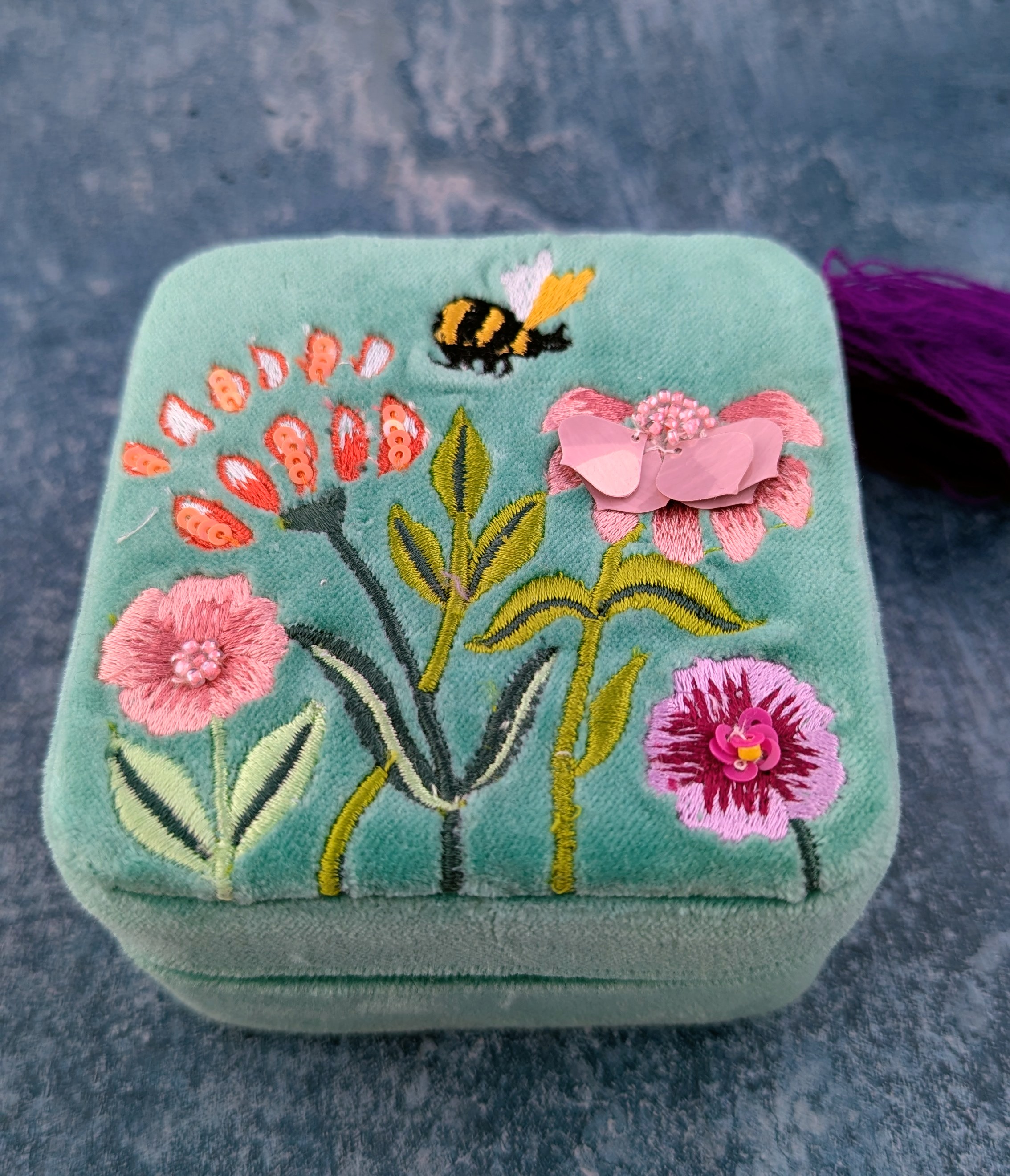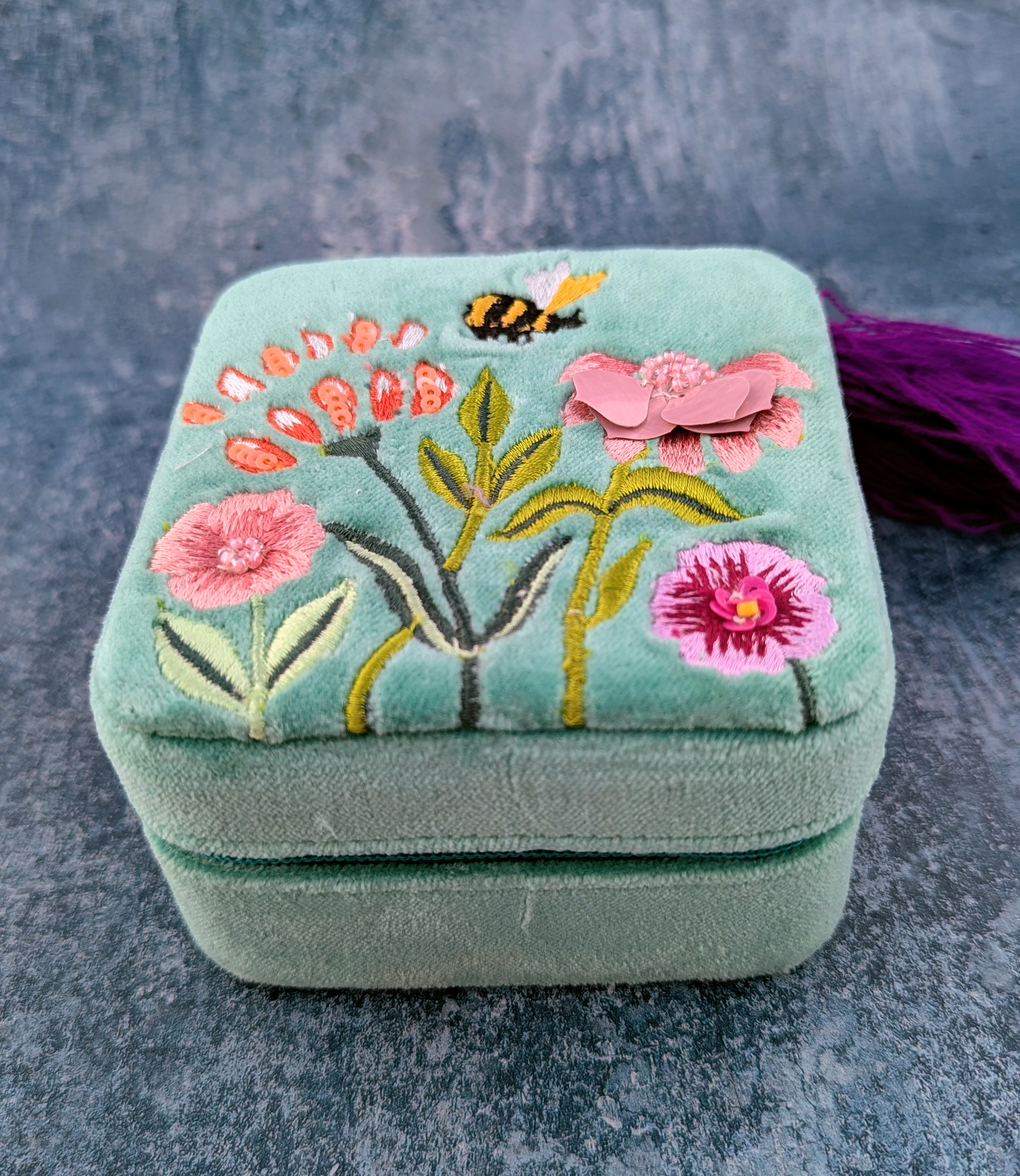 Spring Meadow Embroidered Velvet Jewellery Box