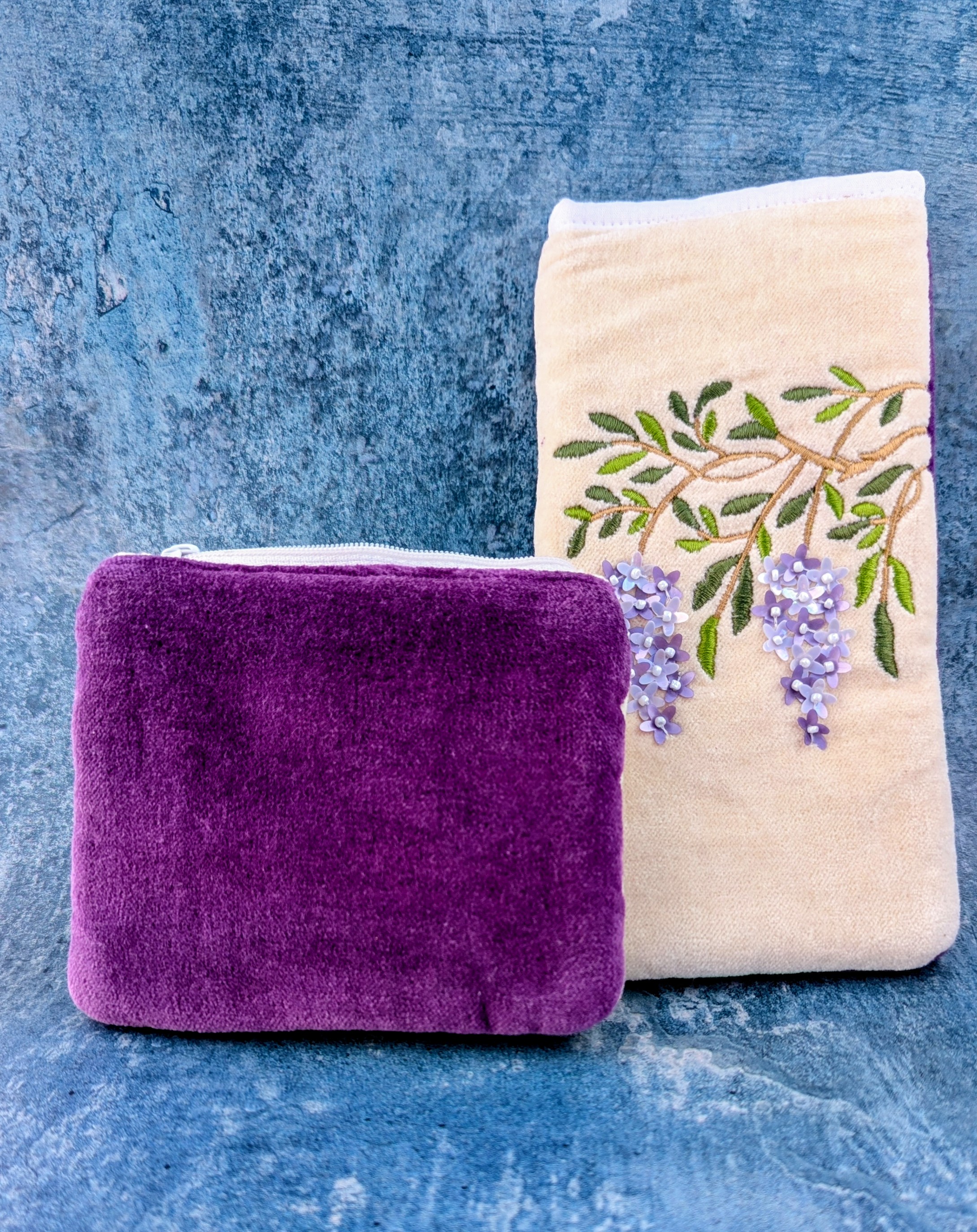 Wisteria Embroidered Velvet Zip Purse