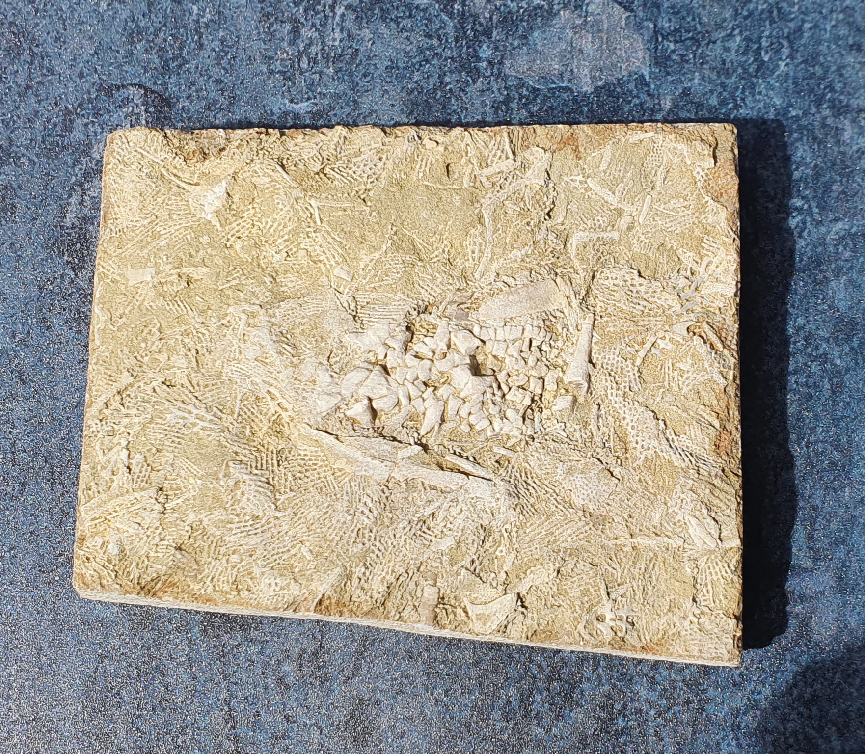 Well defined crinoidal fossils in a slab of Bangor limestone from the Upper Mississippian, Russelville, Alabama. USA.