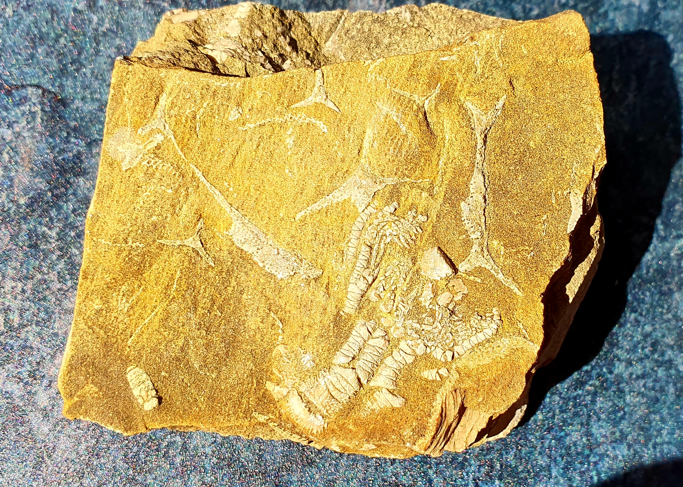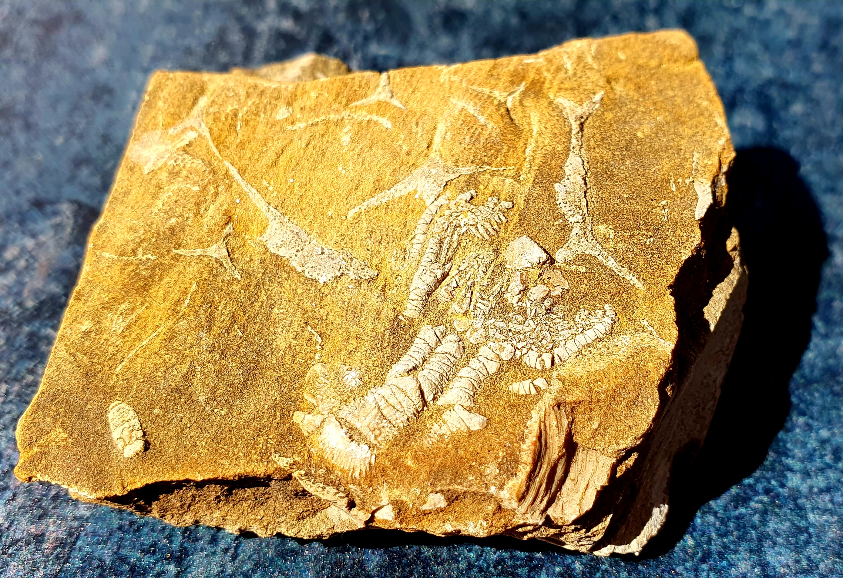 A well defined fossil showing a cluster of crinoids in Bangor Limestone from the Upper Mississippian, Russellvile, Alabama, USA