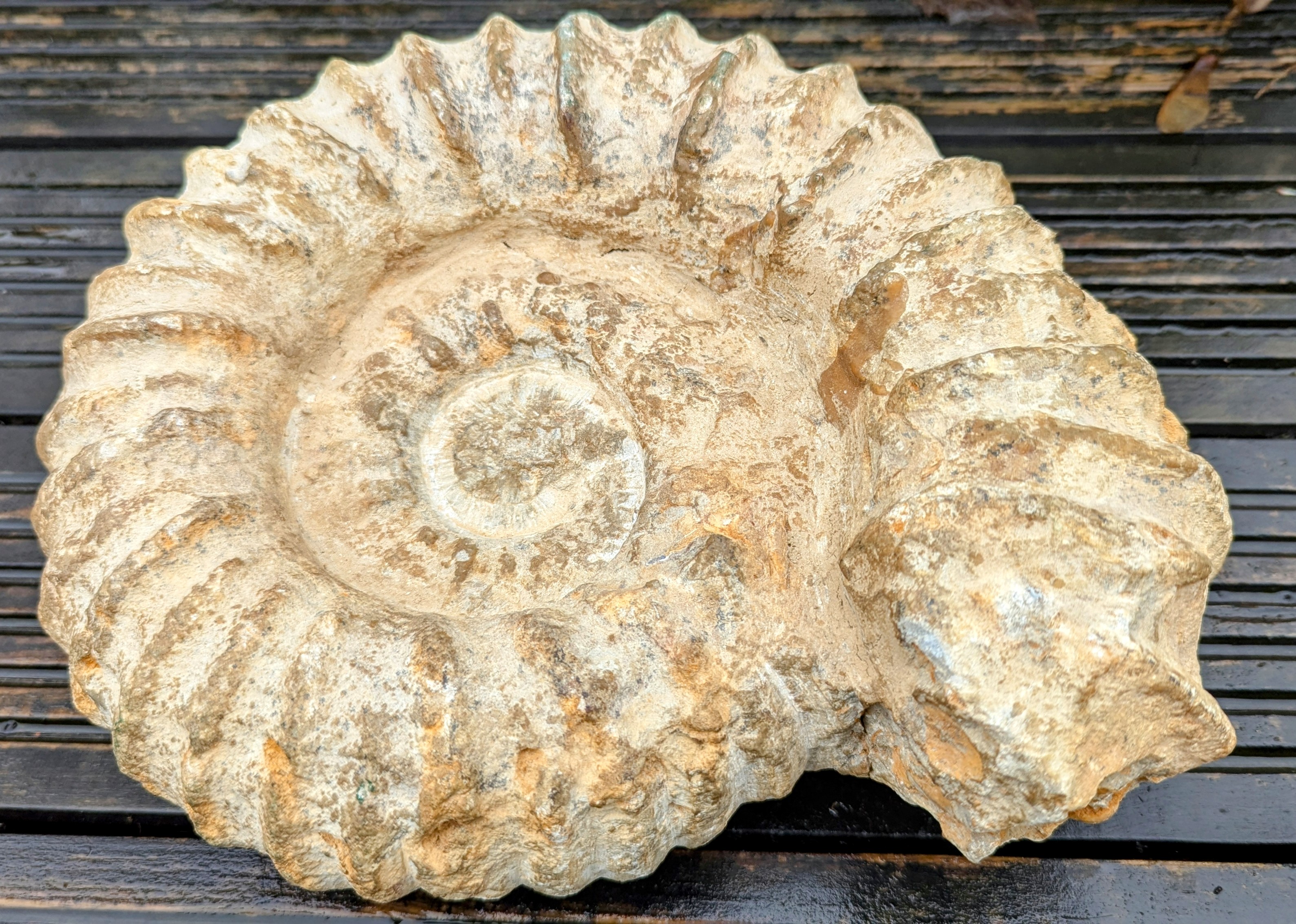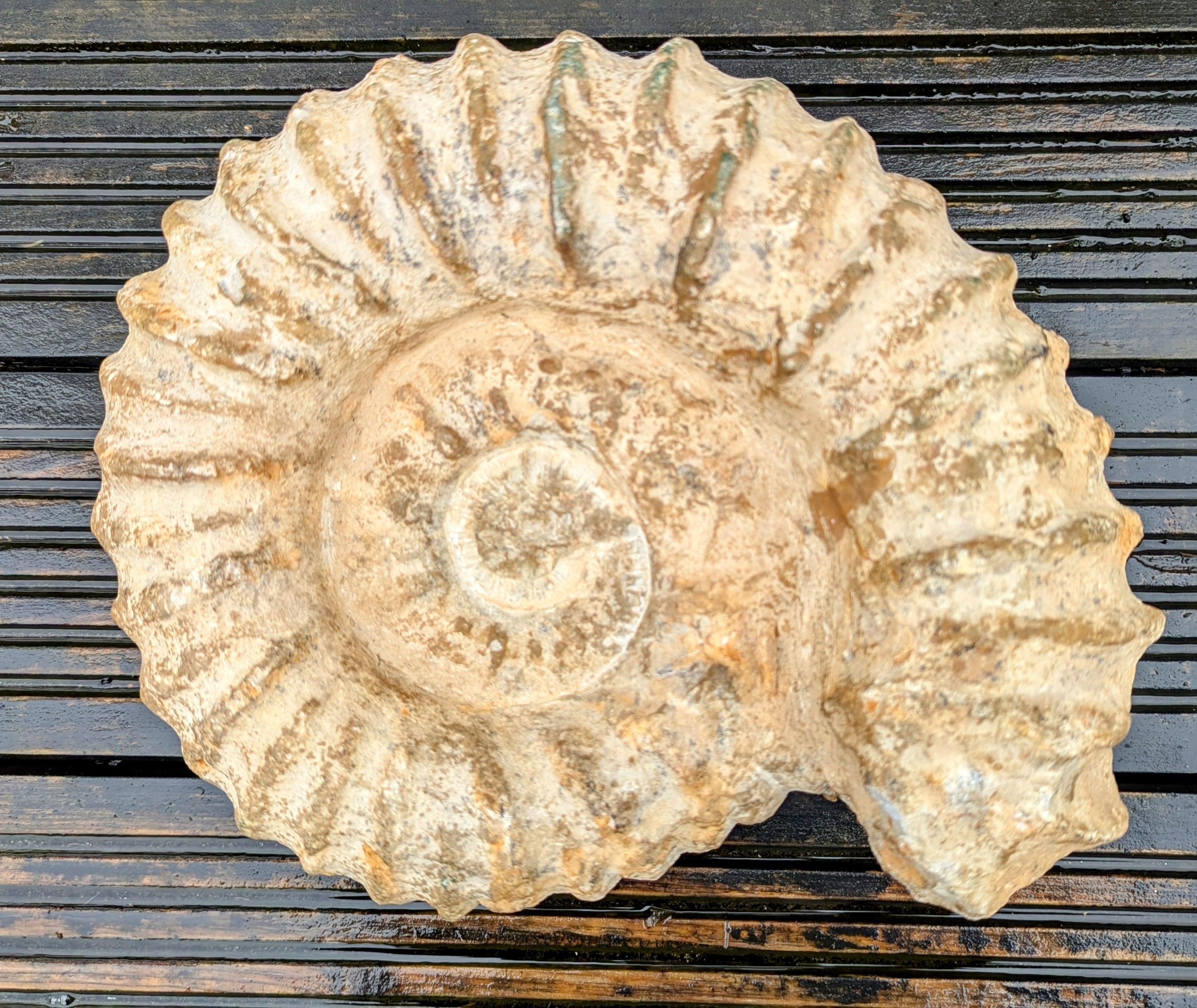 This is one large Agadir Ammonite from Morocco. It is a stunning display piece for your home, approximately 30cm across and 10cm deep, and it has fabulous definition.